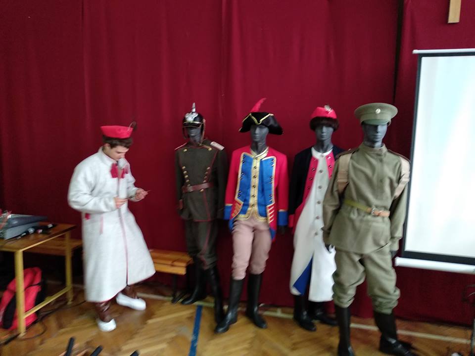 W ramach obchodów stulecia odzyskania niepodległości przez Polskę, w dniu 6 listopada 2018 r. odbył się w naszej szkole pokaz historyczny „Droga do wolności” , zaprezentowany przez Grupę Artystyczną Explanation. Zarówno młodzież jak i nauczyciele mieli okazję wysłuchać prelekcji dotyczącej historii naszego narodu od czasów rozbiorów do 1920 r. Oprócz prezentacji multimedialnej, uczestnicy mogli obejrzeć szereg eksponatów związanych z omawianym okresem historycznym. Były wśród nich mundury powstańców i żołnierzy, repliki broni białej i palnej ,a także oryginalne elementy oporządzenia i uzbrojenia wojskowego z XIX i początku XX w. Szczególnym zainteresowaniem cieszył się pokaz walki na szable oraz trening szermierki, w którym aktywny udział wzięli nasi uczniowie.