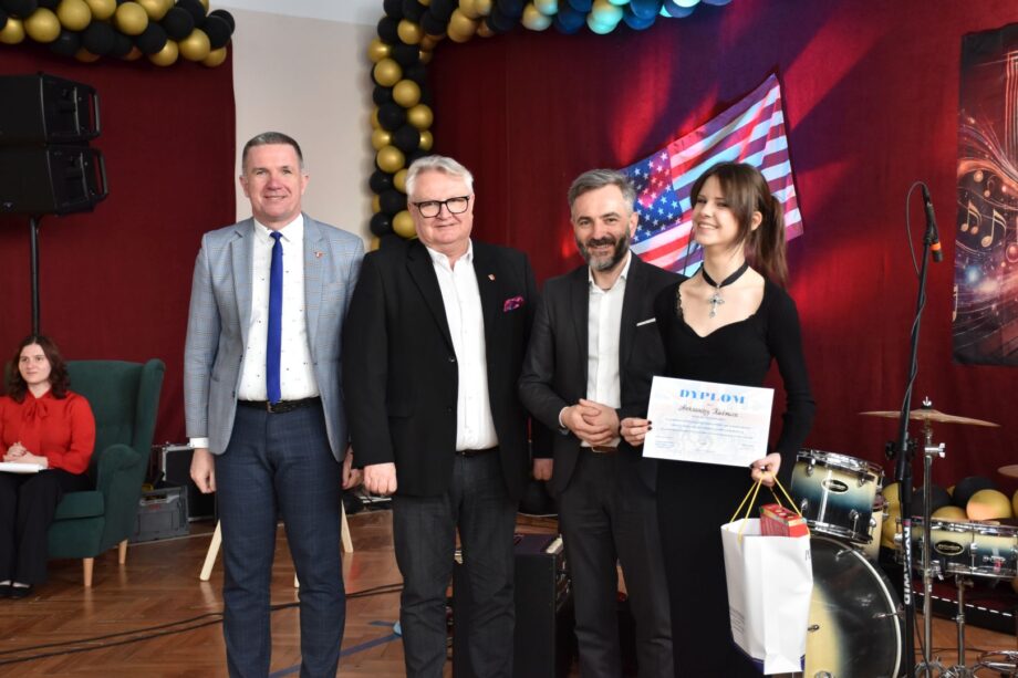 Pan Starosta Janusz Hordejuk nie tylko pogratulował zwycięzcom, ale również wyraził uznanie dla inicjatywy nauczycieli języka angielskiego i zachęcił do organizowania kolejnych edycji konkursu. Na zakończenie Dyrektor Szkoły – Pan Mirosław Kowalski, pogratulował młodzieży osiągniętych sukcesów i zachęcił do dalszej wytrwałej pracy. Gratulujemy wszystkim uczestnikom II Konkursu Piosenki Angielskiej!